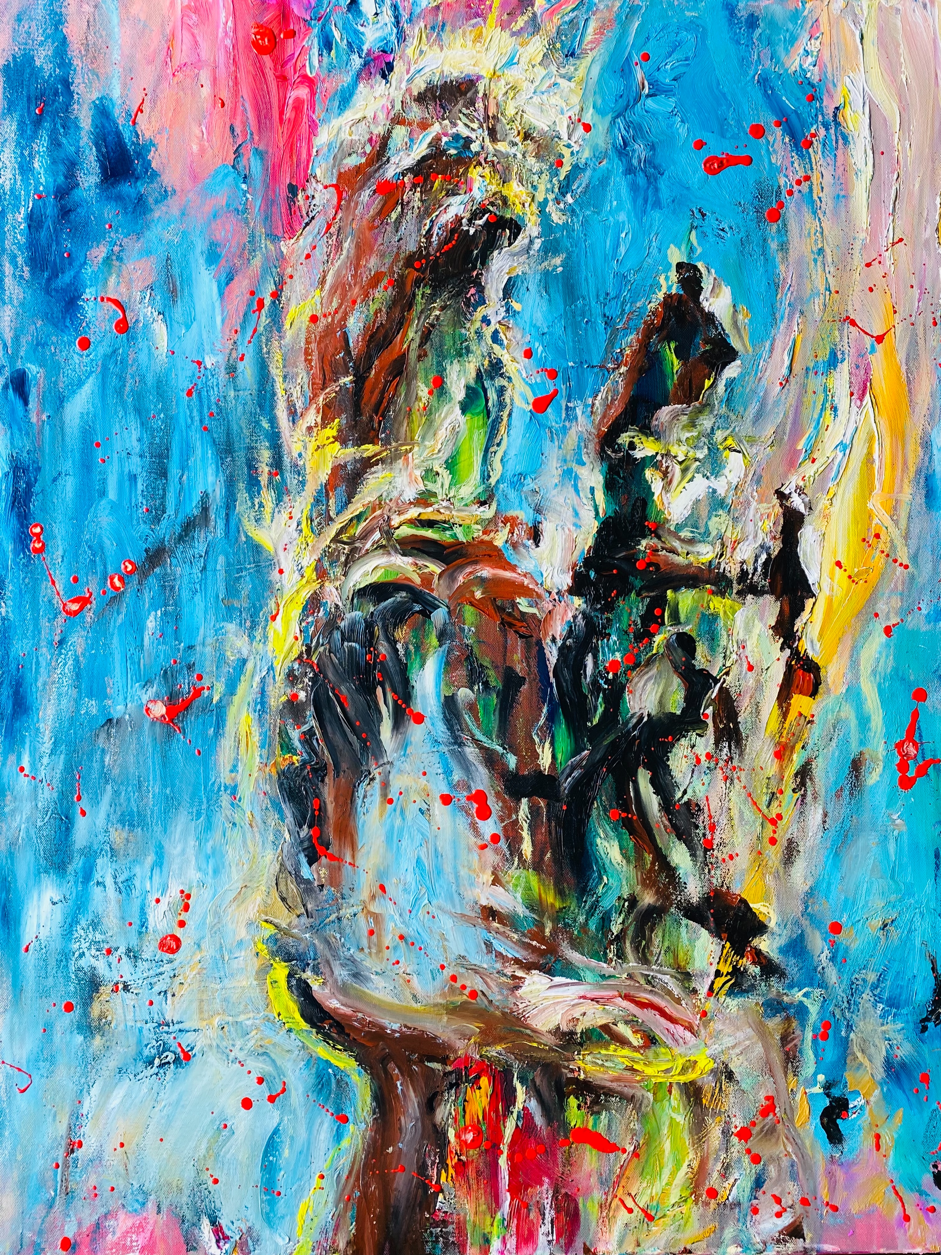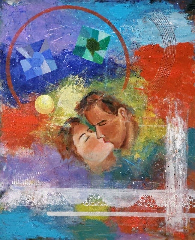 歷練熱戀、磨合、依賴過程,造就成熟的愛情 在色彩繽紛的愛情中, 以具象擁吻呈現熱戀,以抽象色塊表現磨合依賴