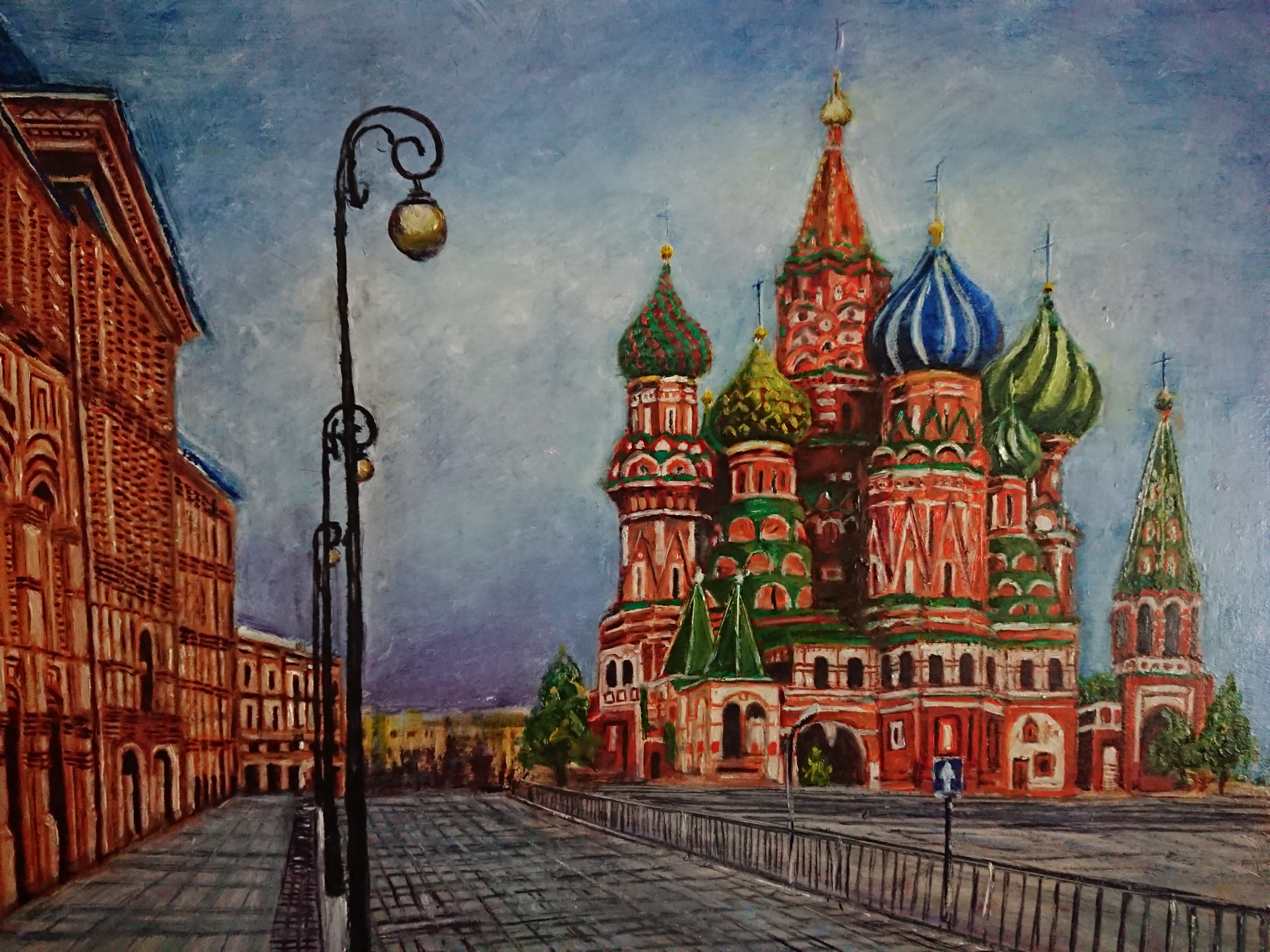 在北港朝天宮正門屋頂上的『天官賜福』剪黏,以天官為主,老宦及執扇女伺候在旁,本作品將天官賜福剪黏,混搭哥德式教堂的彩繪玻璃,透過油彩畫布,呈現東、西方宗教融合的視覺美學。
