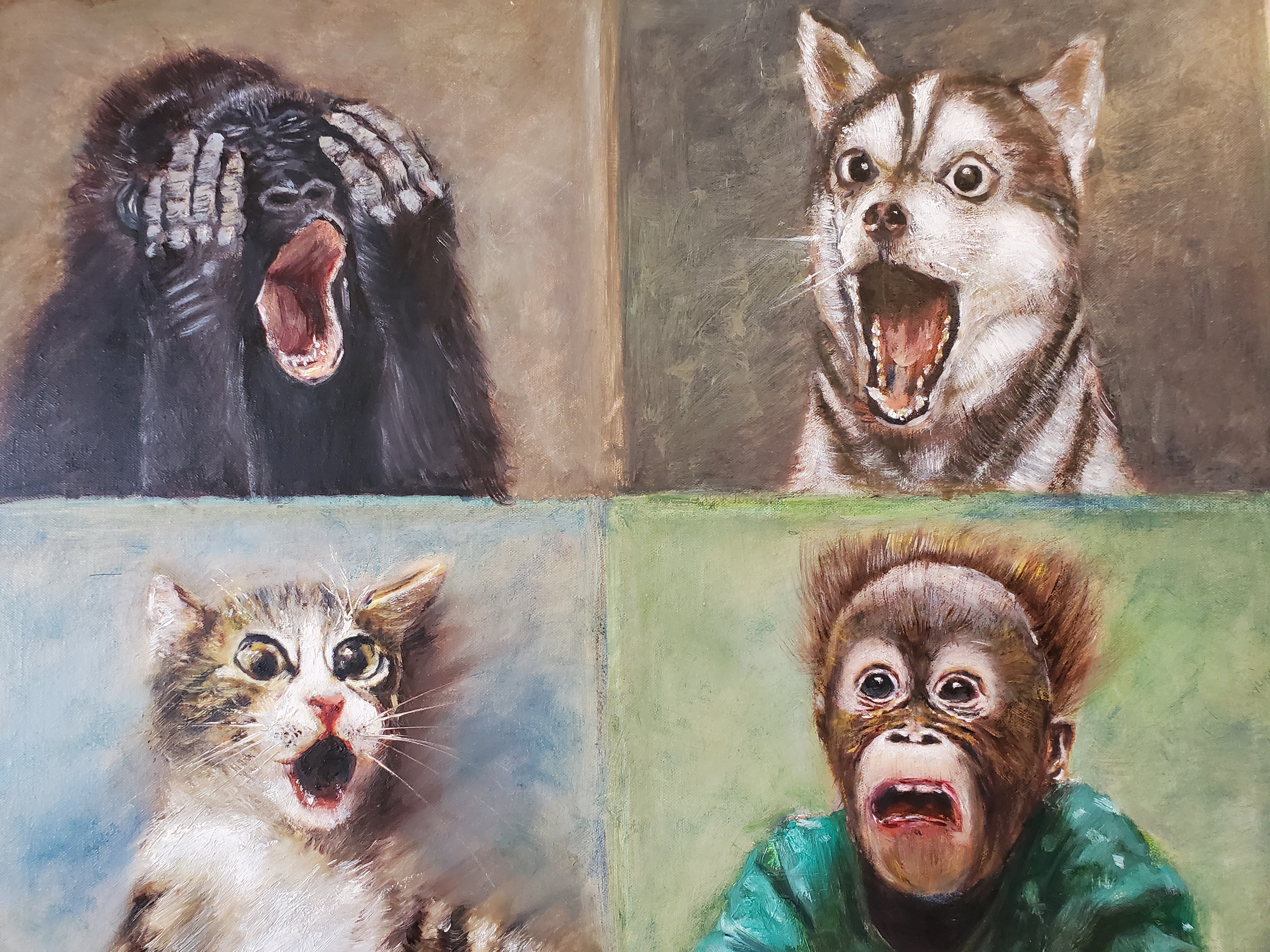 名為「不明覺麗」的油畫雕塑聯展,四位藝術創作者以其人生歷練與生活體驗,加上對藝術的感知力與表現力,透過手繪與捏塑,引導觀者思考生命與信仰的重新建構。