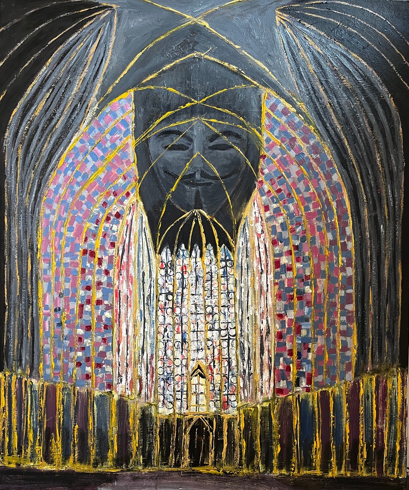 從彩繪玻璃聯想到擁有世界最美玻璃花窗的法國聖禮拜堂,就如同蓋伊.福克斯的面具一樣,具有崇高而神秘的內在意涵,透過聖經故事教化信徒,進入追隨上帝的神聖殿堂。