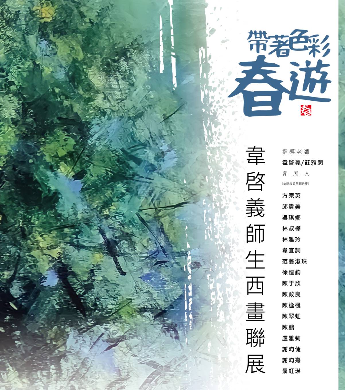 華梵大學美術與文創學系碩士班的王家祁、徐恒鈞、蕭雅月、陳岳宏,分別來自餐飲、保健、美術等不同領域,基於對油畫雕塑的熱愛,5/25~5/31以聯展方式共同發表『人與技術的連結』、『神話彩繪』、『自然生態』、『空靜禪定』等多元風格的創作作品。